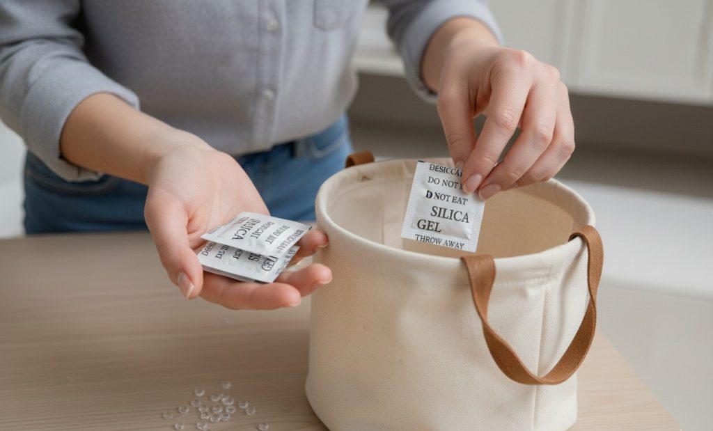 - Cuando los guardes, coloca dentro de cada zapato algunas bolsitas de gel de sílice, que funciona como desecante.