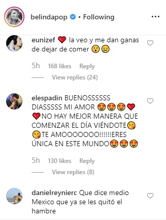 Belinda presumió su figura en su cuenta de Instagram, donde posó frente al espejo y dejó ver que tiene una cintura de envidia.
