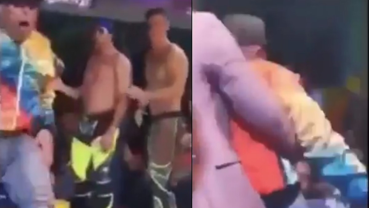 Ahí se realizó el juego “El pepino de platino”, cuando uno de los asistentes, quien se encontraba en estado de ebriedad, subió al escenario y quiso participar en la dinámica.