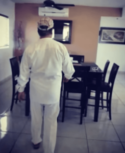 La periodista mostró una foto se puede ver a “Juan Gabriel” de espaldas utilizando un conjunto de camisa y pantalón blanco, un atuendo clásico del cantante, además llama la atención su complexión pues encaja perfectamente con la apariencia del interprete.