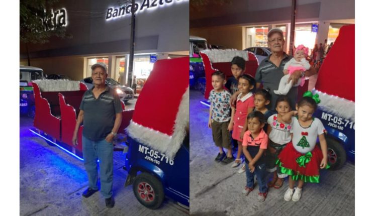 Jerónimo, un abuelo de 75 años decidió hacer felices a sus clientes y convirtió su mototaxi en un trineo navideño.