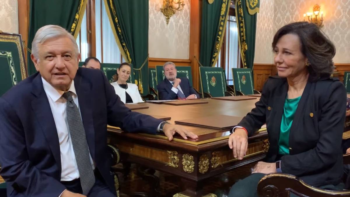 AMLO recibió a Ana Botín esta mañana en Palacio Nacional para cumplir con el compromiso que establecieron a principios de año como apoyo a los migrantes.