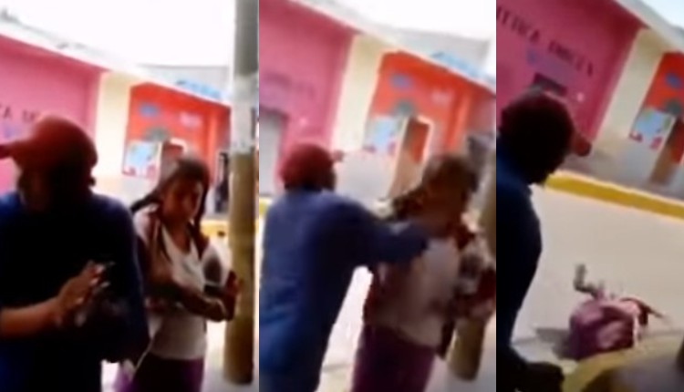 La grabación muestra al sujeto dar una fuerte cachetada a una mujer, sin embargo, varias personas incitan al hombre a que golpear a la mujer.