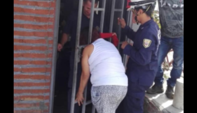 Una mujer se quedó atorada entre las rejas de una puerta, ya que se encontraba espiando la casa de su vecina.