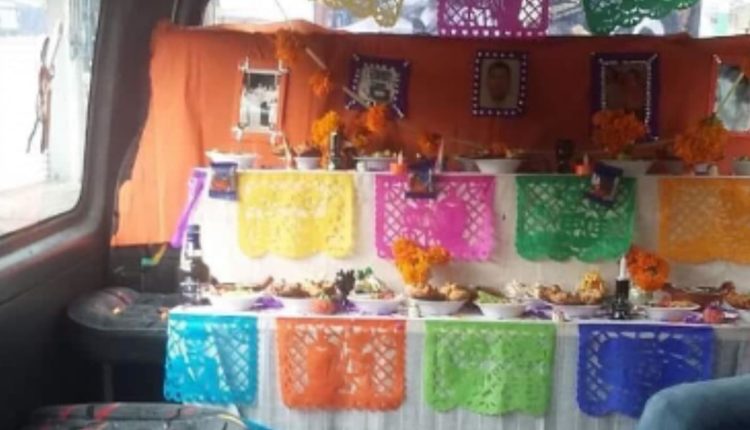 Chofer pone ofrenda de Día de Muertos dentro de su combi; se vuelve viral
