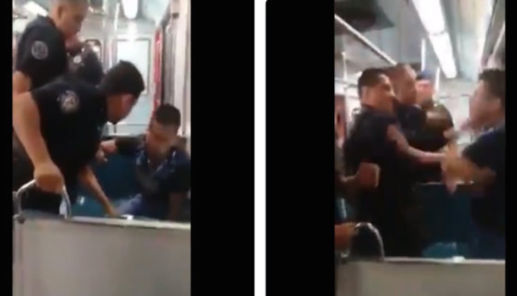 De acuerdo con el video, se puede observar a cuatro policías que increpan al vendedor al interior del vagón.