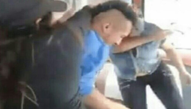 Delincuente se sube a micro a asaltar, su madre lo baja a golpes