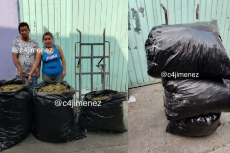 De acuerdo al reportero Carlos Jiménez, la pareja fue capturada mientras caminaban con dos diablitos y las bolsas llenas de marihuana.