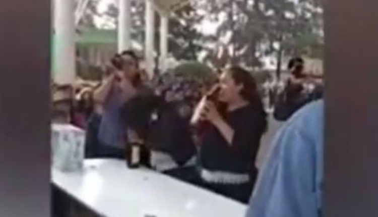 En la secundaria de sus hijos la dinámica consistió en beber lo más rápido posible una caguama, quien resultara victoriosa se llevaría una flamante plancha.