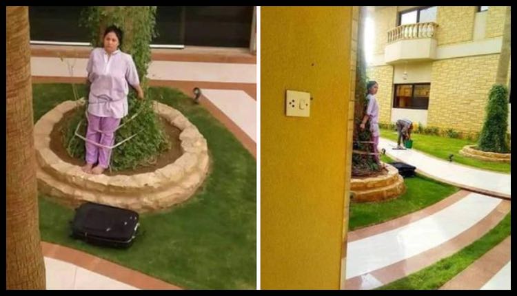 Empleada doméstica es atada en un árbol para castigarla