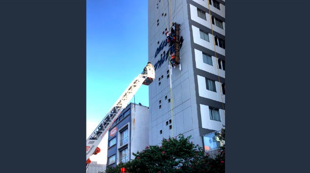 Rescatan con éxito a tres trabajadores que quedaron colgados de un andamio en un edificio de 9 pisos en la Roma Norte pic.twitter.com/1905t4Sm0Y