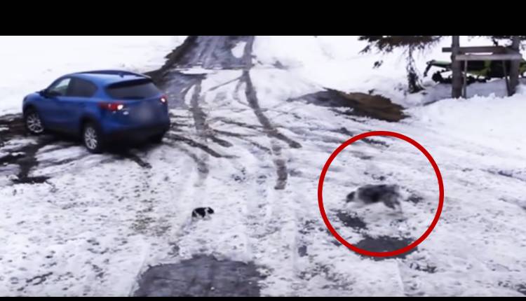 En las imágenes se ve al pequeño caminar hacia el coche, que estaba dando marcha atrás. En ese momento el otro perro, al percatarse del peligro, corre hacia él y se lo lleva a un lugar seguro.