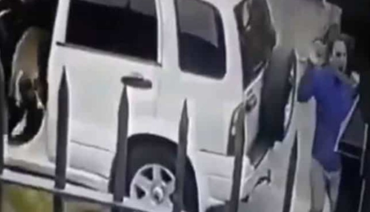 En la grabación se observa cómo el sujeto saca algo de su cajuela cuando dos personas con el rostro cubierto se le acercan.