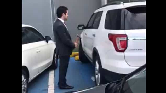 En la grabación se puede ver cómo los gardaespaldas del hombre se acercan a la camioneta del anciano de forma amenazante, e incluso le dicen que si no se baja del auto le van a romper el cristal.
