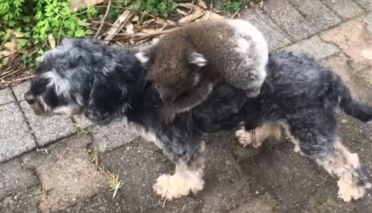 Perrito se hace pasar por la mamá de un koala bebé (Video)