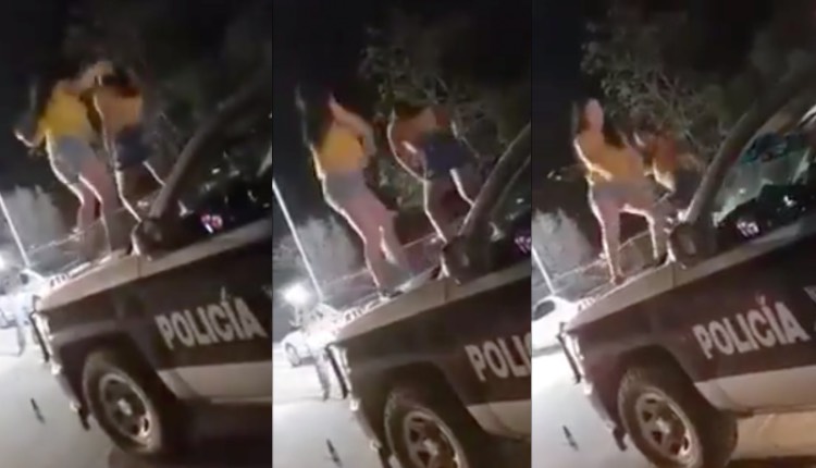 En redes sociales se difundió un video donde dos mujeres “perrean” sobre una patrulla municipal y con los policías abordo.
