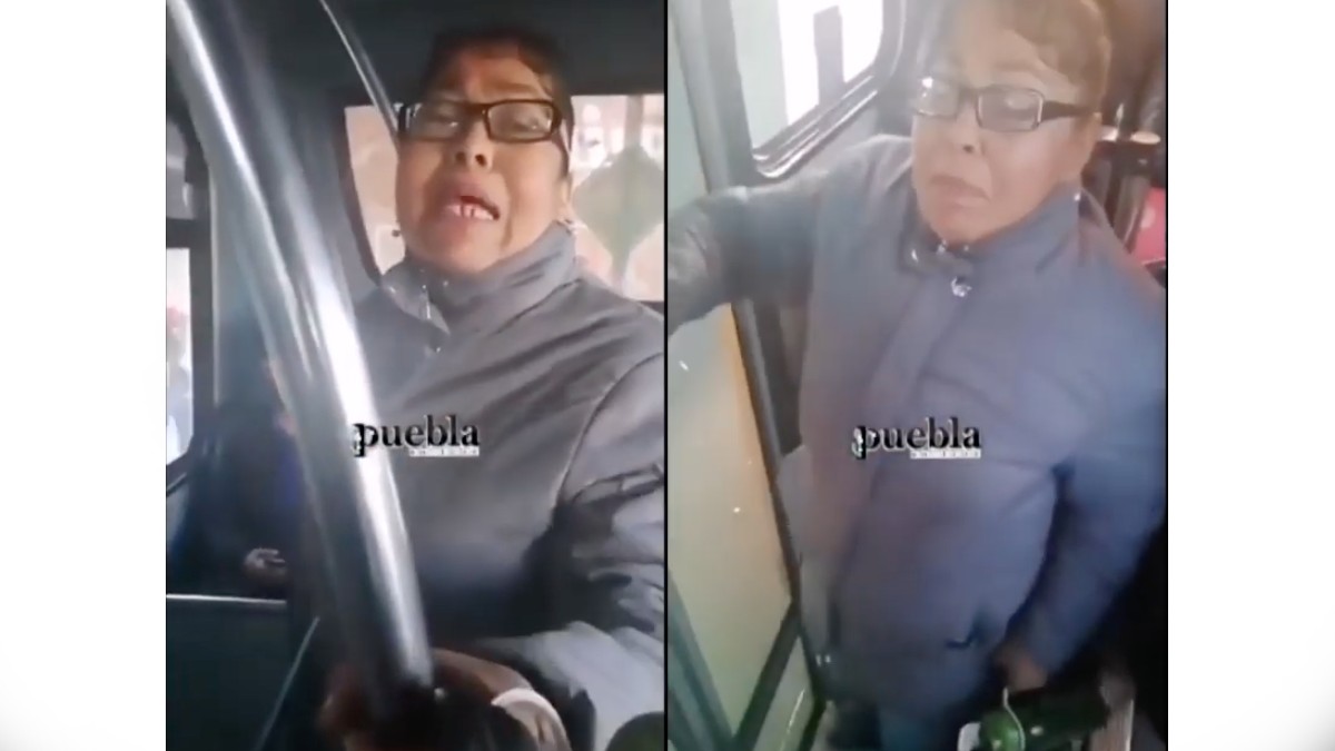 En un video se muestra a una señora que fue sorprendida por los pasajeros de un camión en Puebla mientras robaba celulares.