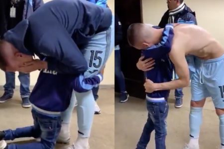 Mientras el niño lo abrazaba de las piernas, el futbolista no soportó esconder su tristeza y también comenzó a llorar. Finalmente, el mediocampista se quitó la última playera que vistió del equipo Bolívar para regalársela a su aficionado.