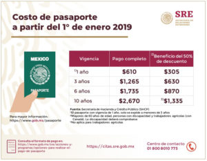 - Pasaporte con validez de diez años: 2,670 pesos mexicanos.