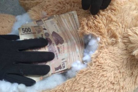 Los elementos pusieron a disposición del Ministerio Público Federal el osito y el dinero asegurado para que comenzaran las investigaciones correspondientes.