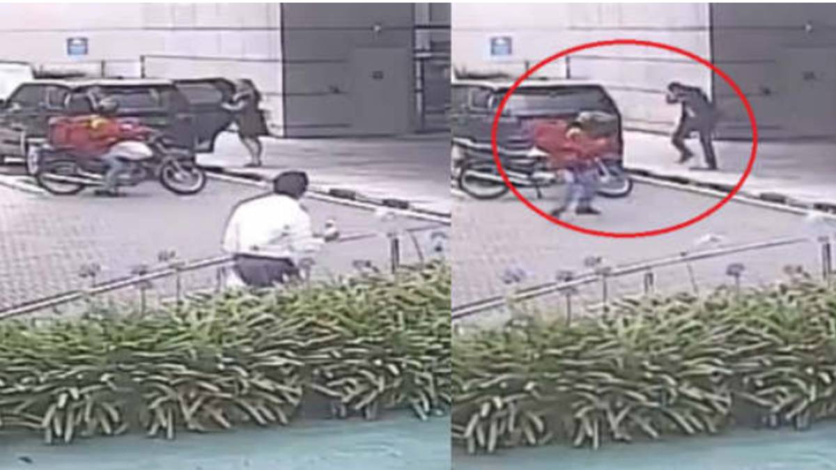 En redes sociales se difundió un video donde se observa a un hombre, aparentemente repartidor de comida, quien intentó atacar a una mujer.