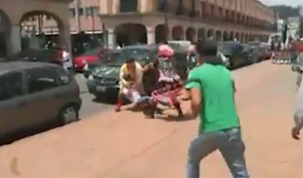 La indignación se hizo escuchar cuando se dio a conocer un video de unos animadores disfrazados con enormes zapatos y pelucas en la plaza González Arratia en Toluca, México.