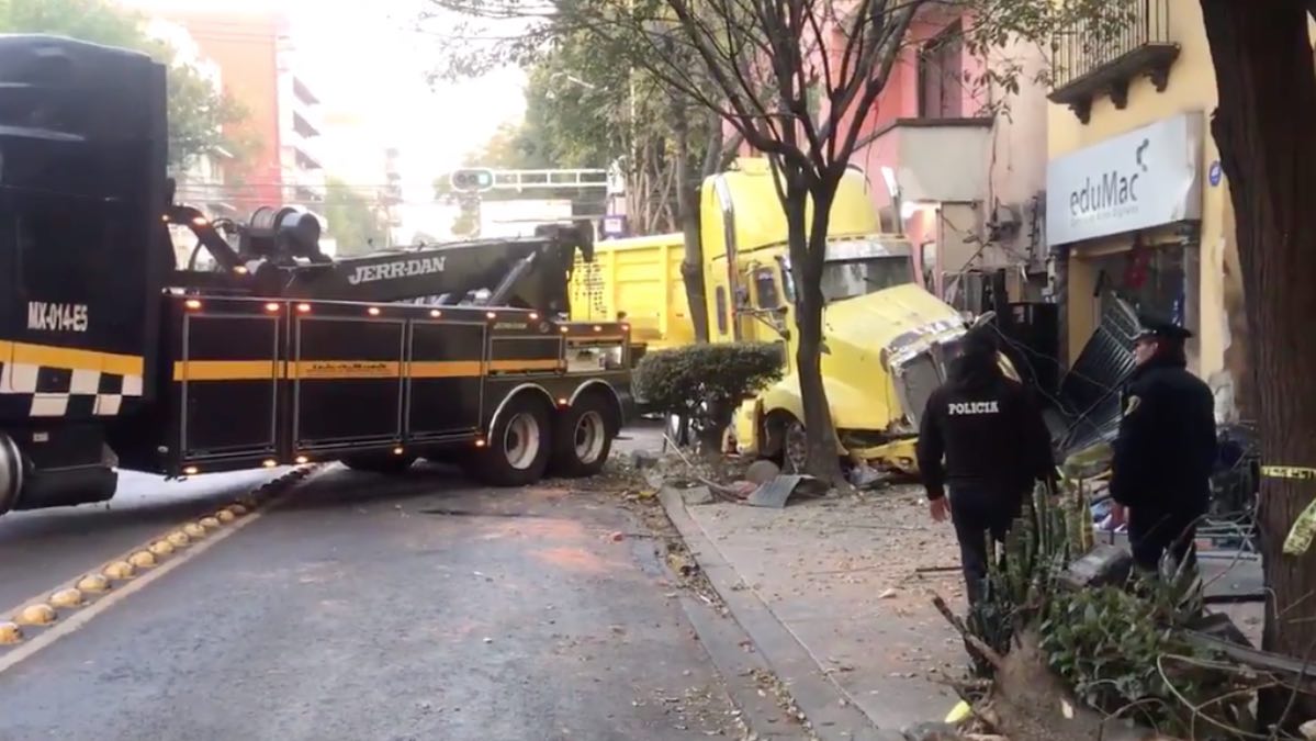 Durante la mañana de hoy se reportó un accidente vial en el que se vio involucrado un carro particular y un tráiler sobre las calles de Juan Escutia y Mazatlán, en la colonia Condesa, alcaldía Cuauhtémoc.