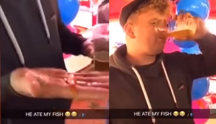 Se encontraba en un parque de diversiones, donde se ganó un pez y le pareció buena idea tragárselo.