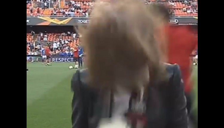 Todo ocurrió en el calentamiento de ambos equipos, la periodista española Mónica Benavent se encontraba realizando un enlace desde la cancha del estadio Mestalla (en Valencia).