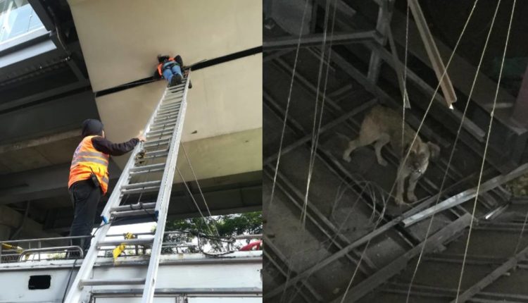 Esta estación se encuentra en un tramo elevado así que los elementos de Protección Civil necesitaron utilizar una grúa para bajar al perro que se encontraba a una altura de 8 metros.