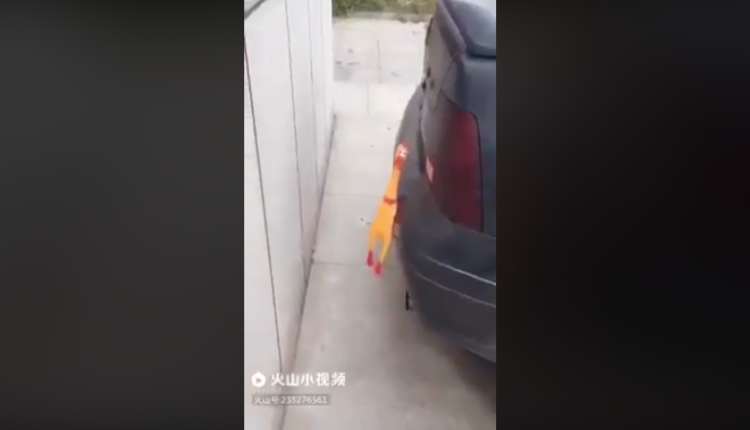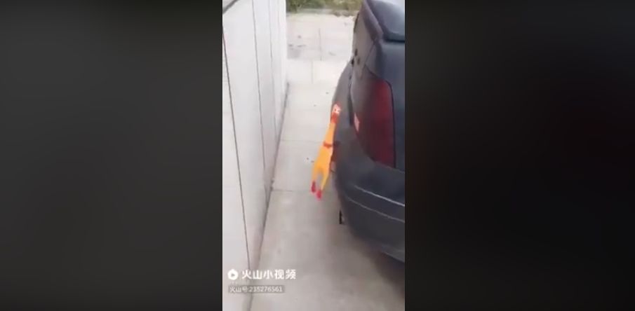 El video que se ha hecho viral en redes sociales muestra a un auto que se dirige hacia una pared, y en la parte trasera del auto se encuentra un pollo de goma. Y sí, señores, ese es el magnífico aditamento automovilístico traído desde China.
