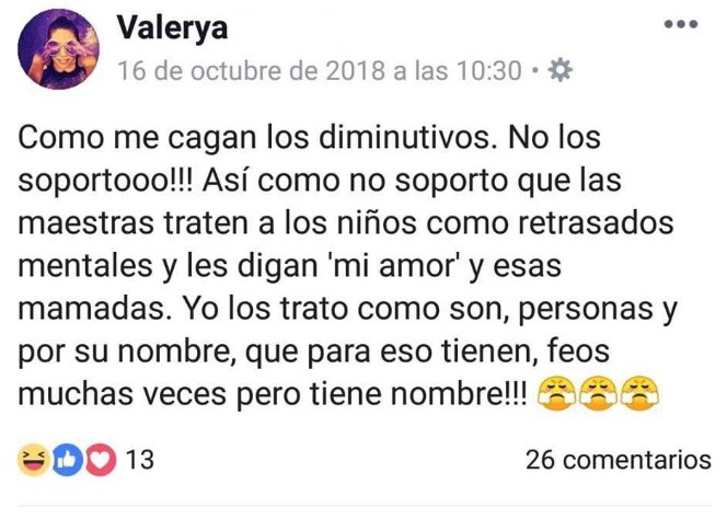 En sus redes sociales la mujer solía desquitar su furia y lanzaba cualquier clase de pestes en contra de sus tiernos alumnitos.