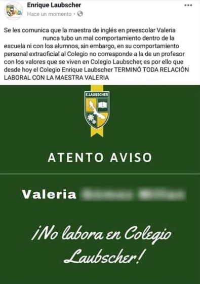 Pero más pronto cae un hablador, porque alguna persona que ya no soportaba a la mujer de nombre “Valerya” la denunció en la cuenta de la escuela.