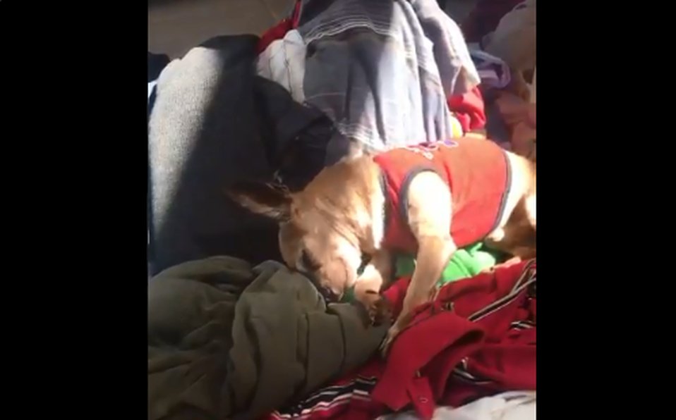 La historia del perrito se dio a conocer cuando compartieron un video y se observa como el Chihuahua llora sobre un montón de ropa desempacada de una caja.