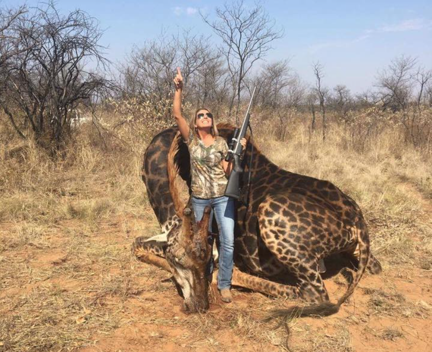 Una mujer de Kentucky, Estados Unidos, fue de cacería a Sudáfrica y presumió en redes la muerte de una jirafa negra.