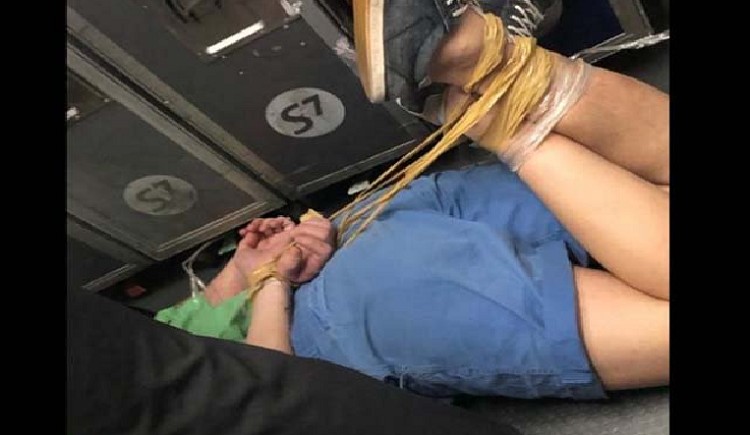 ¡Por borracho! Atan de pies y manos a pasajero durante vuelo