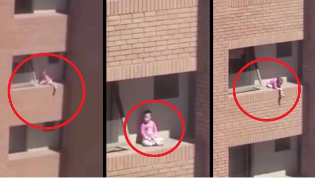 En un video difundido en redes sociales se puede observar que la niña desconoce el riesgo que corre, se desplaza de un lado a otro y se inclina en la cornisa.