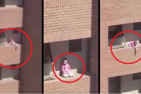 En un video difundido en redes sociales se puede observar que la niña desconoce el riesgo que corre, se desplaza de un lado a otro y se inclina en la cornisa.